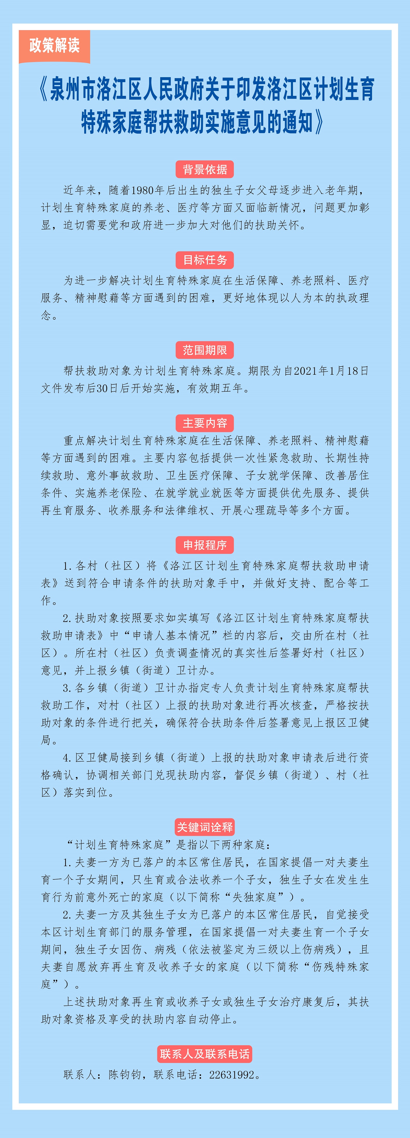 【圖解】關于《泉州市洛江區人民政府關于印發洛江區計劃生育特殊家庭幫扶救助實施意見的通知》的政策解讀