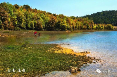 春光無限,馬甲鎮爐田村到處生機勃勃,一派春意盎然。在春的映襯下,美麗神圣的天然氧吧——馬鼎池,波光粼粼,碧綠如玉。岸上的木荷林仿佛被染上了秋色的金黃,與林間的草木相伴,五彩斑斕如一幅幅油畫。微風吹拂,湖面蕩起層層漣漪,天色映照,樹木參差,水上的真實與水中的虛幻緊密銜接,讓人頓時沉迷在夢幻般的世界里。