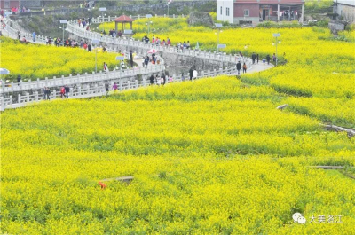 在虹山鄉,滿目的油菜花團團簇簇,隨風搖曳,花香彌漫,沁人心脾。徜徉于花海之中,或與春天合個影,或駐足觀賞這滿眼的金黃,放慢腳步,感受春光之美,讓人舒適又安逸。
