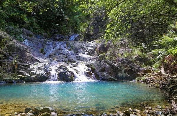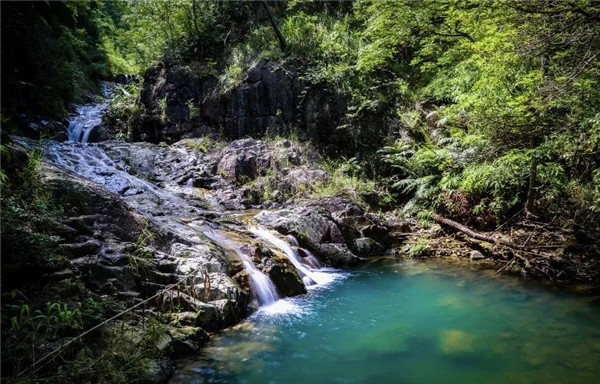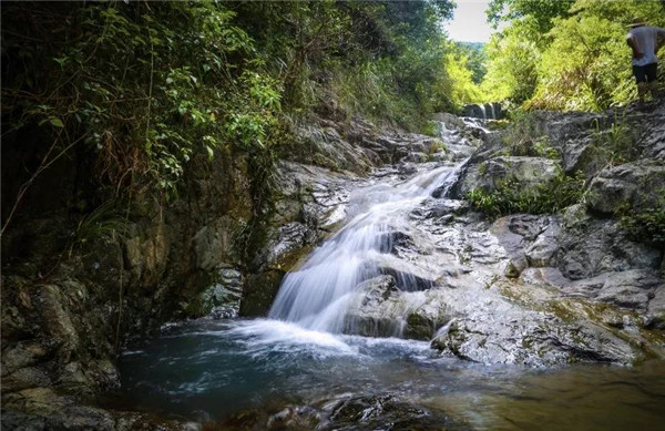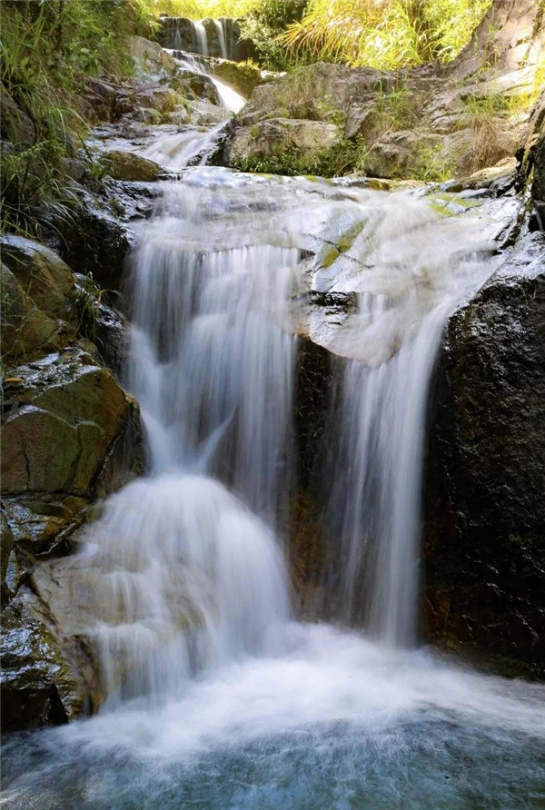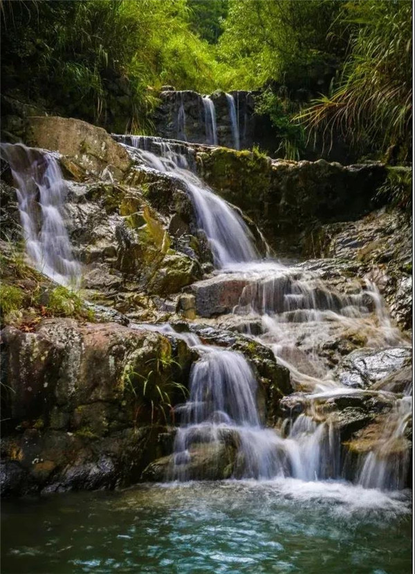 在五掌山中,大大小小的瀑布有幾十余處,形成了很多連續的天然瀑布,人稱“七連瀑”。叮咚的山泉水沿著嶙峋的山石流淌下來,匯聚成一汪清澈的潭水,如同一副有聲有色的山水畫。