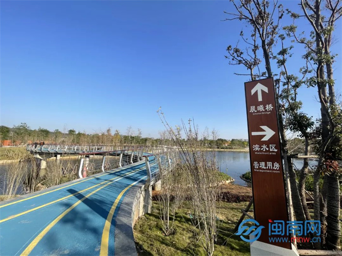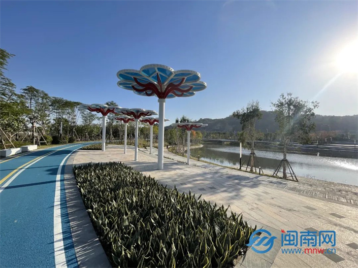 走進公園里,晨曦棧道、落虹拱橋、臥波石橋,三座水上橋梁造型各異,交相輝映;橋下水光粼粼,濕生植物青蔥翠綠,吸引眾多白鷺前來棲息、嬉戲;小文化廣場上的紅磚景墻,陳三與五娘的剪影栩栩如生,講述著這段家喻戶曉的愛情佳話;近水平臺上的刺桐花形燈頗為亮眼,夜間流光溢彩……從早到晚,這里已成為周邊居民休閑、鍛煉的好選擇。