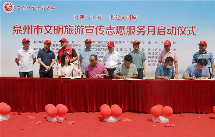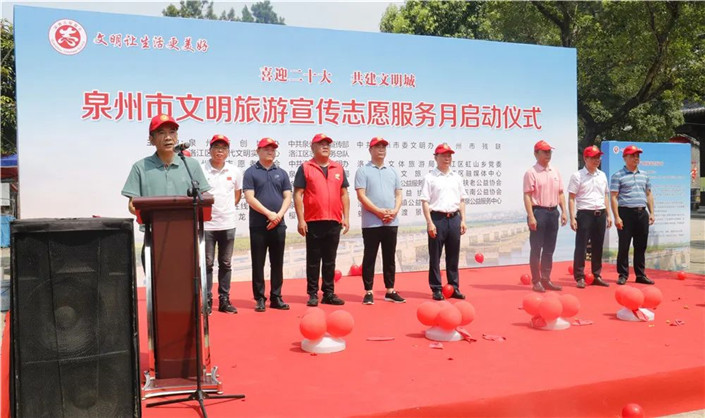 7月15日,“喜迎二十大 共建文明城”——泉州市文明旅游宣傳志愿服務(wù)月在洛江啟動。市委宣傳部副部長、文明辦主任賴暢水,區(qū)委常委、宣傳部部長張榮偉參加。