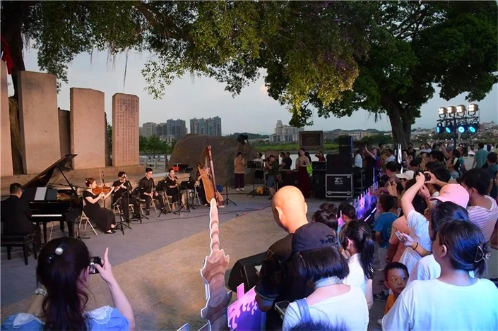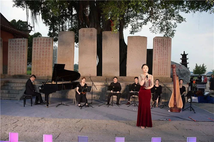 在陳三五娘文化園組織古箏表演,加大陳三五娘傳說宣傳力度,吸引節(jié)日游客觀賞。