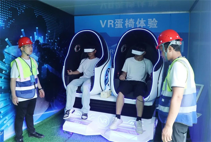 隨后開展洛江區醫院項目一期安全生產標準化建設觀摩活動。現場以“展示+體驗”的形式進行,通過設置了屋面工程樣板、水井電井樣板等區域及綜合用電體驗、現場急救體驗、VR安全體驗館等多個互動體驗項目,介紹了項目在安全生產、工地建設等方面的亮點,并讓參觀者通過親身體驗,深刻感受安全生產的重要性。在觀摩過程中,觀摩人員與現場講解人員積極互動,不時就具體問題展開深入探討交流,大家紛紛對本次觀摩中的先進經驗做法給予充分肯定。