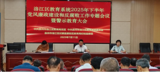7月11日,洛江區(qū)教育局組織召開2025年下半年黨風(fēng)廉政建設(shè)和反腐敗工作專題會議暨警示教育大會,全區(qū)各中小學(xué)校長、書記、幼兒園園長、教師進(jìn)修學(xué)校副科級以上干部及區(qū)教育局全體干部職工參加,區(qū)教育局黨組書記、局長王煒煌出席會議并講話。